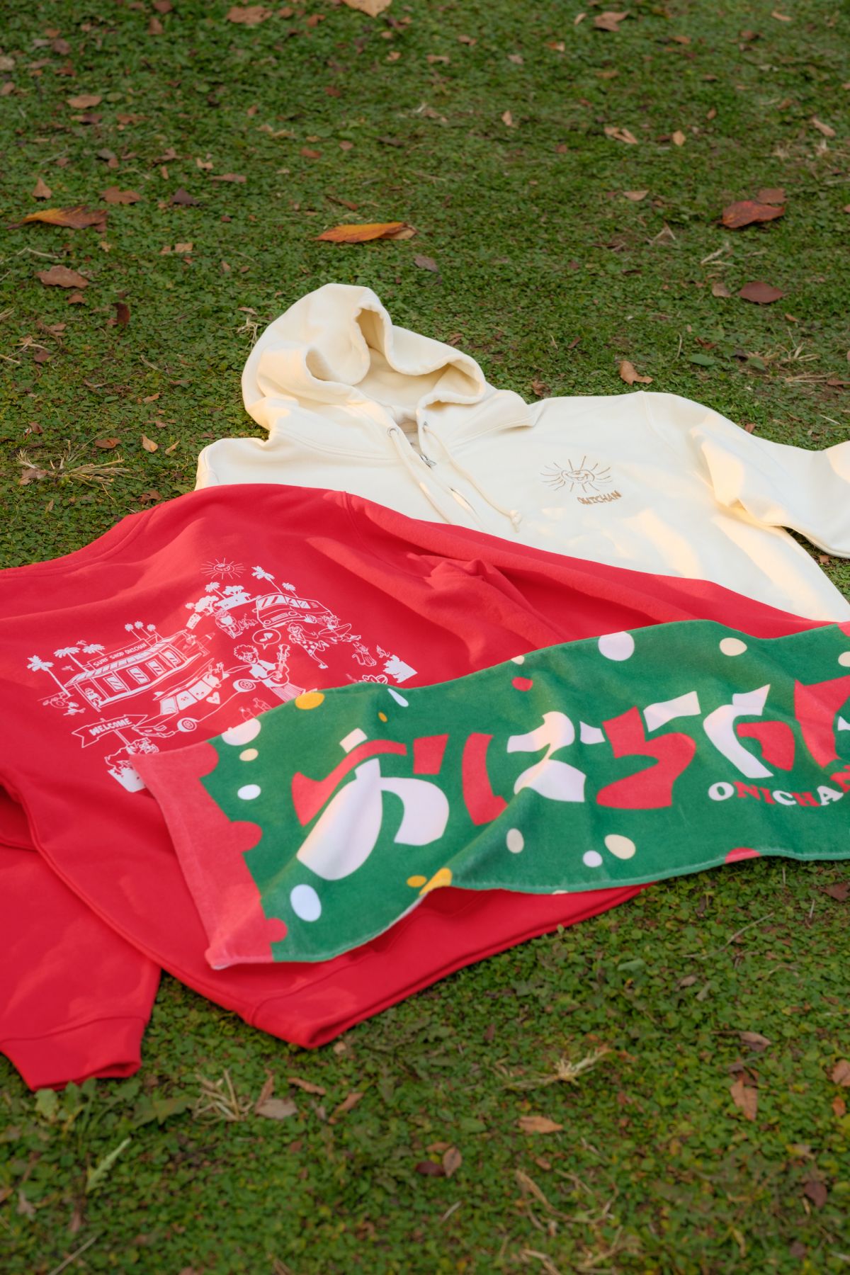クリスマスをイメージした限定デザインのおにちゃんロゴタオルも登場🎄